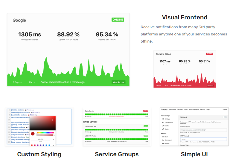 - Generates customizable public status pages