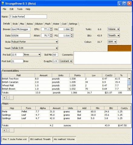 A cross-platform reimplementation of the StrangeBrew brewing software written in Java. Planned features include management for mashing, water profiles, cost, carbonation, inventory control and more.