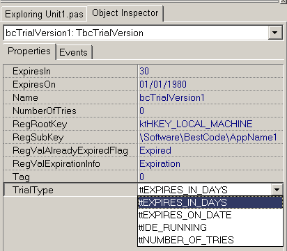 TbcTrial allows Delphi developers to quickly create trial versions of their software to distribute for evaluation purposes. You can provide trial capabilities based on the following expiration options: