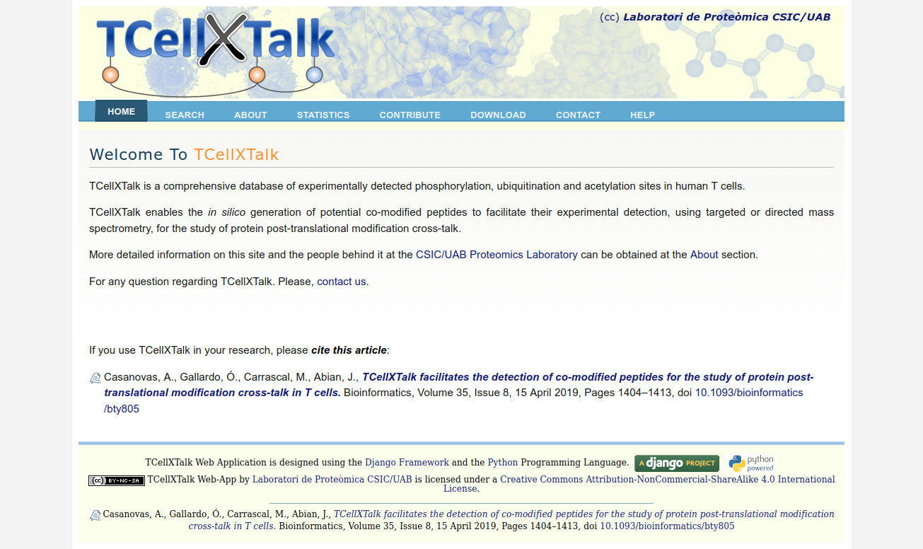 More detailed information on TCellXTalk and the people at the CSIC/UAB Proteomics Laboratory behind it can be obtained at https://www.tcellxtalk.org/about/