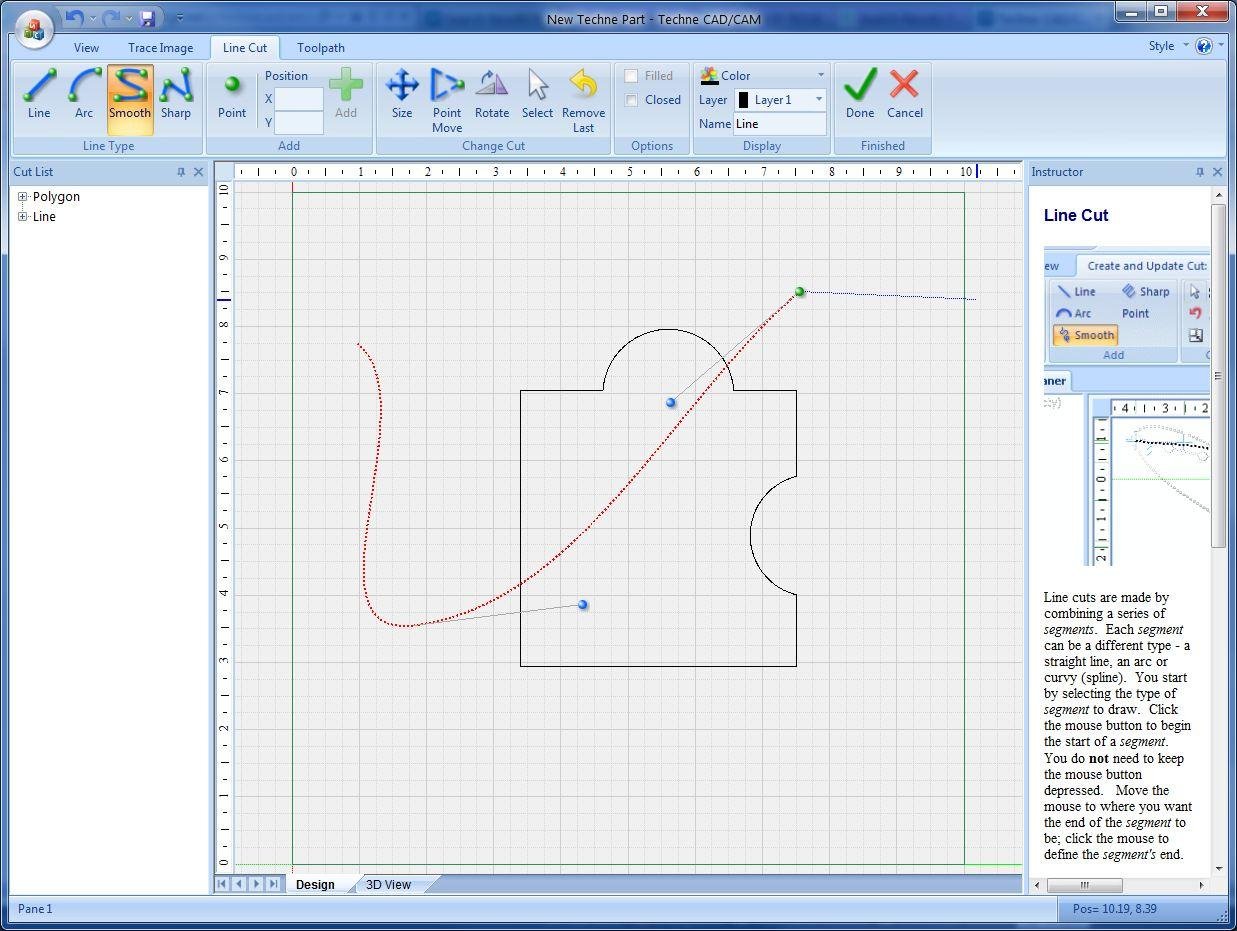 The goal is a design application closer to Adobe Illustrator than to AutoCAD. The user specifies machining aspects during object creation so that when the design/layout phase is completed the toolpath generation can occur automatically.