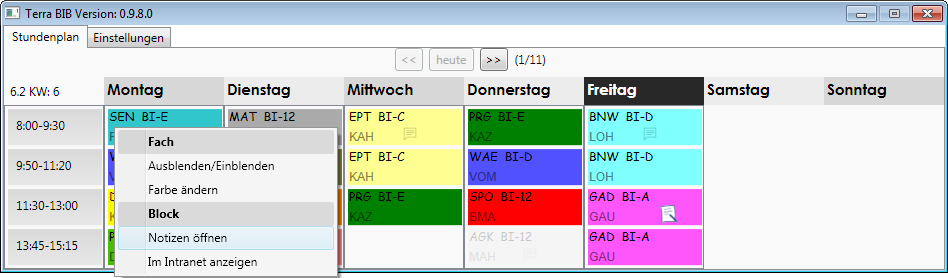 - Fach kürzel werden aufgelöst