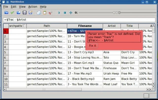 Texel - Tagging like excel. An MP3 (and similar) tagger with a spreadsheet look and feel. Based on KDE, Qt, taglib, boost. Written in C++. Needs KDE 4.3, QT 4.5 and a modern Linux version.