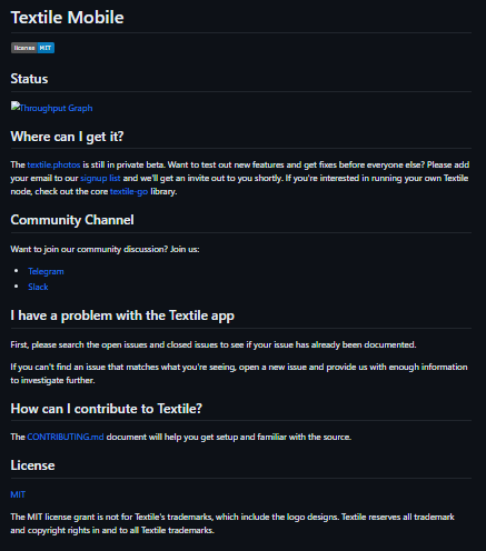 Encrypted, secure, decentralized personal data wallet -- the technology behind textile.photos. The textile.photos is still in private beta. Want to test out new features and get fixes before everyone else? Please add your email to our signup list and we'll get an invite out to you shortly. If you're interested in running your own Textile node, check out the core textile-go library.