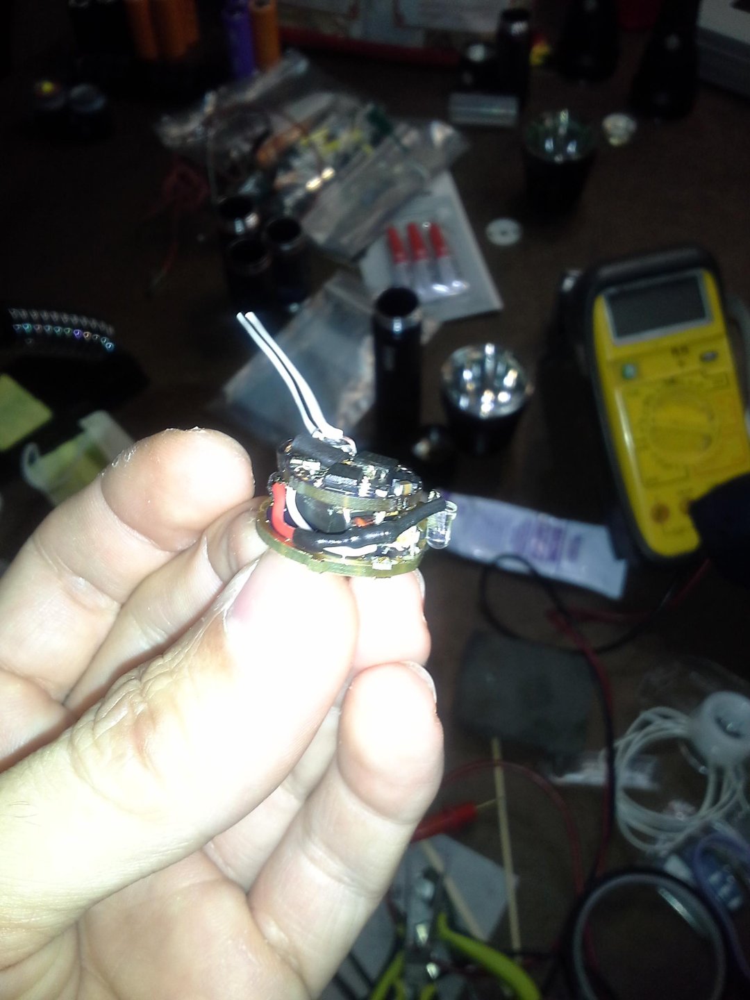 Hopefully this will help get morse code into flashlights. Seems everyone wants a light that goes high. I built these lights years ago. The buck was a personal design I had fabbed at oshpark and it fit into a modded budget light.