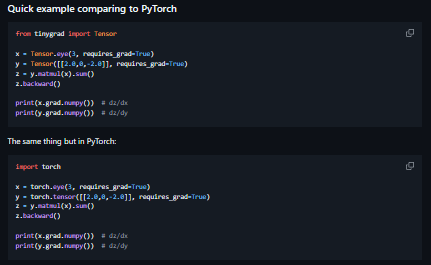 This may not be the best deep learning framework, but it is a deep learning framework. Due to its extreme simplicity, it aims to be the easiest framework to add new accelerators to, with support for both inference and training. If XLA is CISC, tinygrad is RISC.