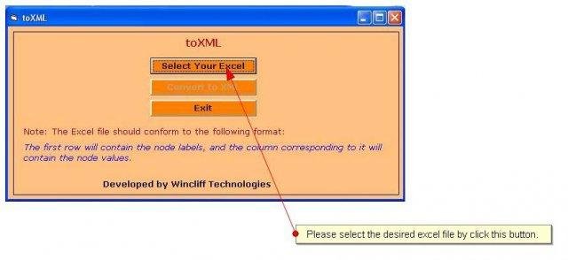toXML is a Windows application that lets the user convert a Excel file to XML.