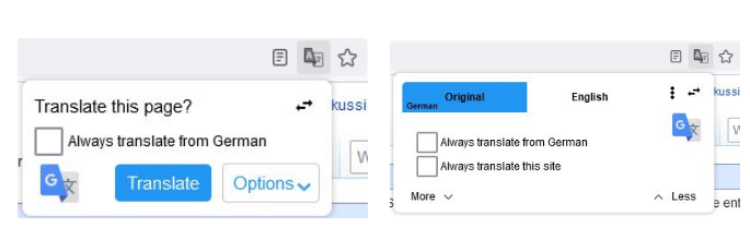 • Your current page is translated without having to open new tabs