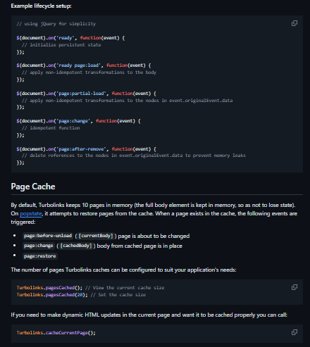 - Easy opt-out per-link capability using data-turbolinks="false"