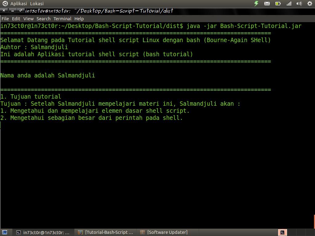 Aplikasi belajar linux shell scripting menggunakan bash adalah aplikasi yang memudahkan anda untuk belajar shell script menggunakan bash. Anda dituntut mengetahui elemen dasar shell script dan mampu membuat program shell interaktif.