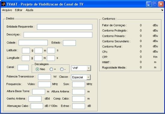 Aplicativo para auxílio na elaboração de projetos de viabilização de canais de TV. Baseado na regulamentação nº284 de 7 de dezembro de 2001. Aplicação desenvolvida em MatLab. Utiliza o método da interpolação para estimar os valores das curvas de intensidade de campo, utilizadas nos cálculos. Aplicação destinada a estudantes do curso de engenharia de telecomunicações.