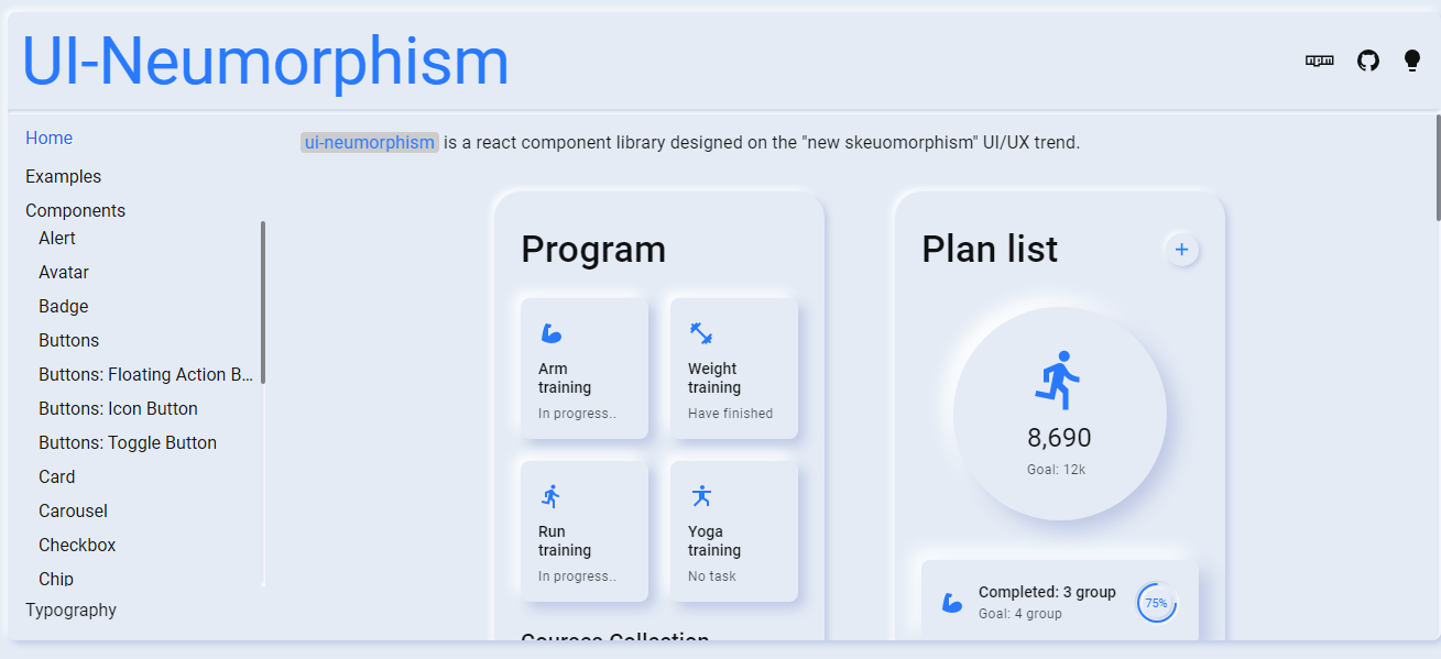 UI-metamorphism is a react component library designed on the "new skeuomorphism" UI/UX trend.