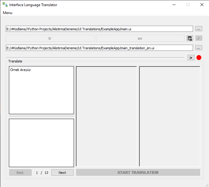 It helps you to translate your .ui / .xml files that you prepared in QtDesigner environment with PySide2 to the interface of the programs you will make in Python with the application. You can easily add new languages to your program.