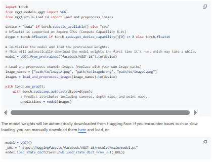 VGGT is a transformer-based framework aimed at unifying classic visual geometry tasks—such as depth estimation, camera pose recovery, point tracking, and correspondence—under a single model. Rather than training separate networks per task, it shares an encoder and leverages geometric heads/decoders to infer structure and motion from images or short clips. The design emphasizes consistent geometric reasoning: outputs from one head (e.g., correspondences or tracks) reinforce others (e.g., pose or depth), making the system more robust to challenging viewpoints and textures. The repo provides inference pipelines to estimate geometry from monocular inputs, stereo pairs, or brief sequences, together with evaluation harnesses for common geometry benchmarks. Training utilities highlight data curation and augmentations that preserve geometric cues while improving generalization across scenes and cameras.