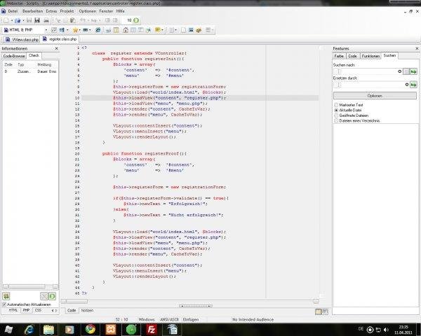 - Hilfeklassen für Formulare, -validierung, Datenbanktabellen, Views, JavaScript