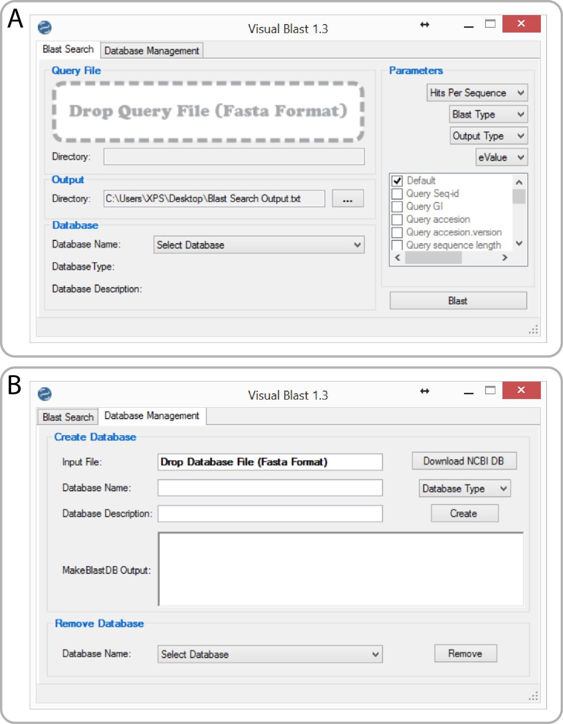 BLAST (Basic Local Alignment Search Tool) is a popular program that retrieves a library of sequences that resemble the query. The major problem experienced by new users of BLAST revolves around constructing syntactically and semantically correct command line, getting input files into acceptable formats and assessing the output. Visual BLAST is a Graphical User Interface written in C# and it was developed to simplify the parameters setting for BLAST searches. Visual BLAST aims to make BLAST searches accessible to a wider audience with no bioinformatics skill and to facilitate usage among the existing.