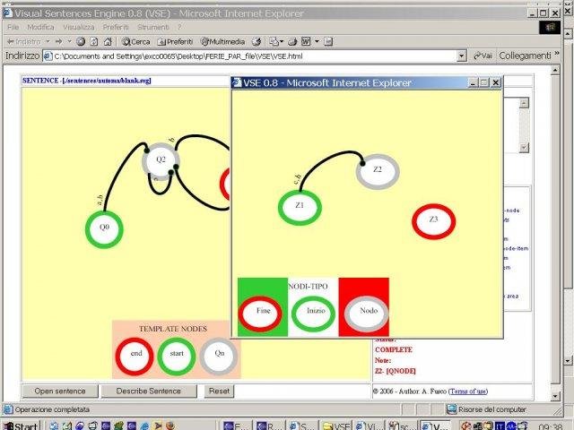 VSE - Visual Sentence Engine. A SVG-based engine for drawing and evaluating visual sentences for generic visual languages. Support a web-based GUI. Actually support DFA (Deterministic Finite Automata) as typical visual language. Required Adobe SVGViewer.