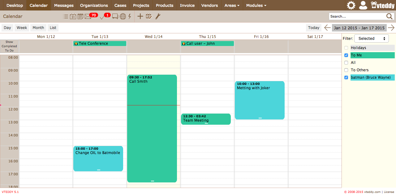 - Shared calendar, organizations and up to 4 other business modules