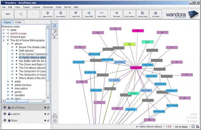Wandora is a general purpose information extraction, management, and publishing environment based on Topic Maps and Java. Wandora has several data storage options, rich data extraction, import and export capabilities and embedded server.
