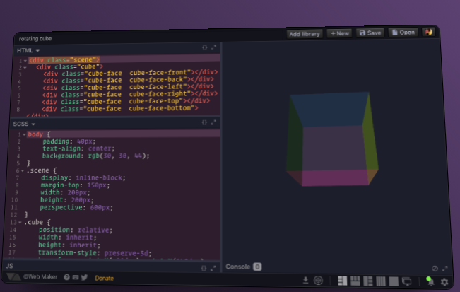 Web-Maker is an offline playground for your web experiments. Something like CodePen or JSFiddle, but much more faster and works offline because it runs completely on your system. Supports Preprocessors: HTML (Pug & Markdown), CSS (SCSS, LESS & Stylus, Atomic CSS) & JavaScript (ES6, TypeScript & CoffeeScript). Hi! I am Kushagra Gour. Web Maker is a free and open-source project. To keep me motivated for working on such open-source and free side projects, I have launched a Patreon campaign. Your pledge, no matter how small, will act as an appreciation towards my work and keep me going forward making Web Maker more awesome. Very easily accessible. Simply open a new tab in Chrome! (in chrome extension only). Capture preview screenshot (in Chrome extension only). Multiple layouts to choose from. Capture preview screenshot (in Chrome extension only). Save as HTML file. Edit in CodePen.