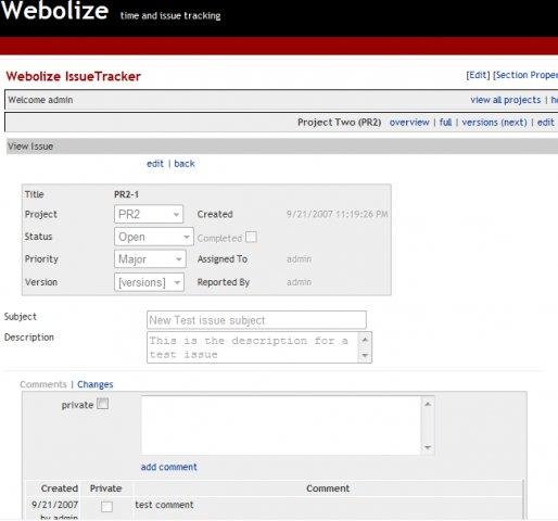 Webolize IssueTracker (aka bugtracker) is a web-based bug and issue tracker (is part of a time tracker). Written using C#, ASP.NET and the (BSD) Cuyahoga web cms (nhibernate, castle ioc...). Runs on Windows XP, Vista or Server