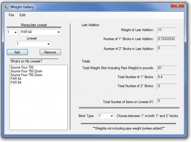 Weight Gallery is a program designed to help theatre technicians properly counter-weight their hanging units.