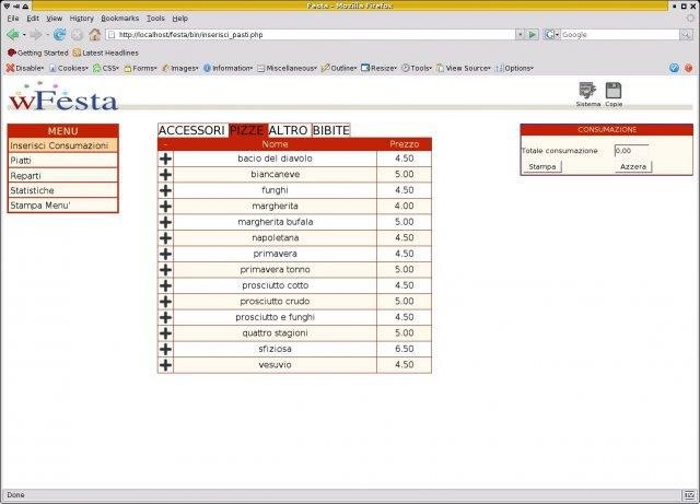 WFesta is a program to manage menu and receipt emission in a town festival, meeting, or similar; it is web based (written in PHP) so it should be independent from web server OS an client OS (but is necessary a javascript-enabled web browser).