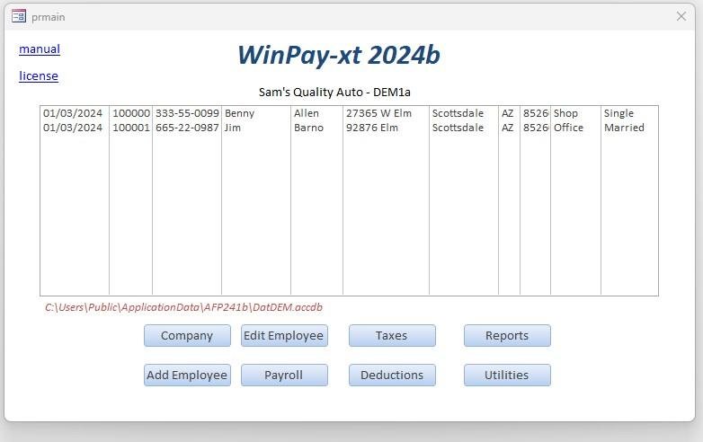 This is a sample/educational demo payroll program, for learning payroll and MS-Access programming. It is similar to the app WebPayXT2023, written in MS-Access.