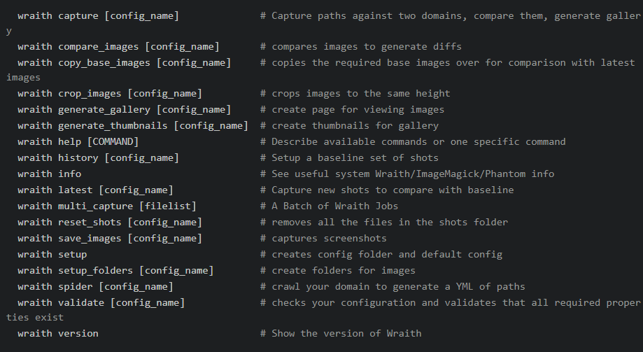 - Wraith has some built-in JavaScript and configuration file templates