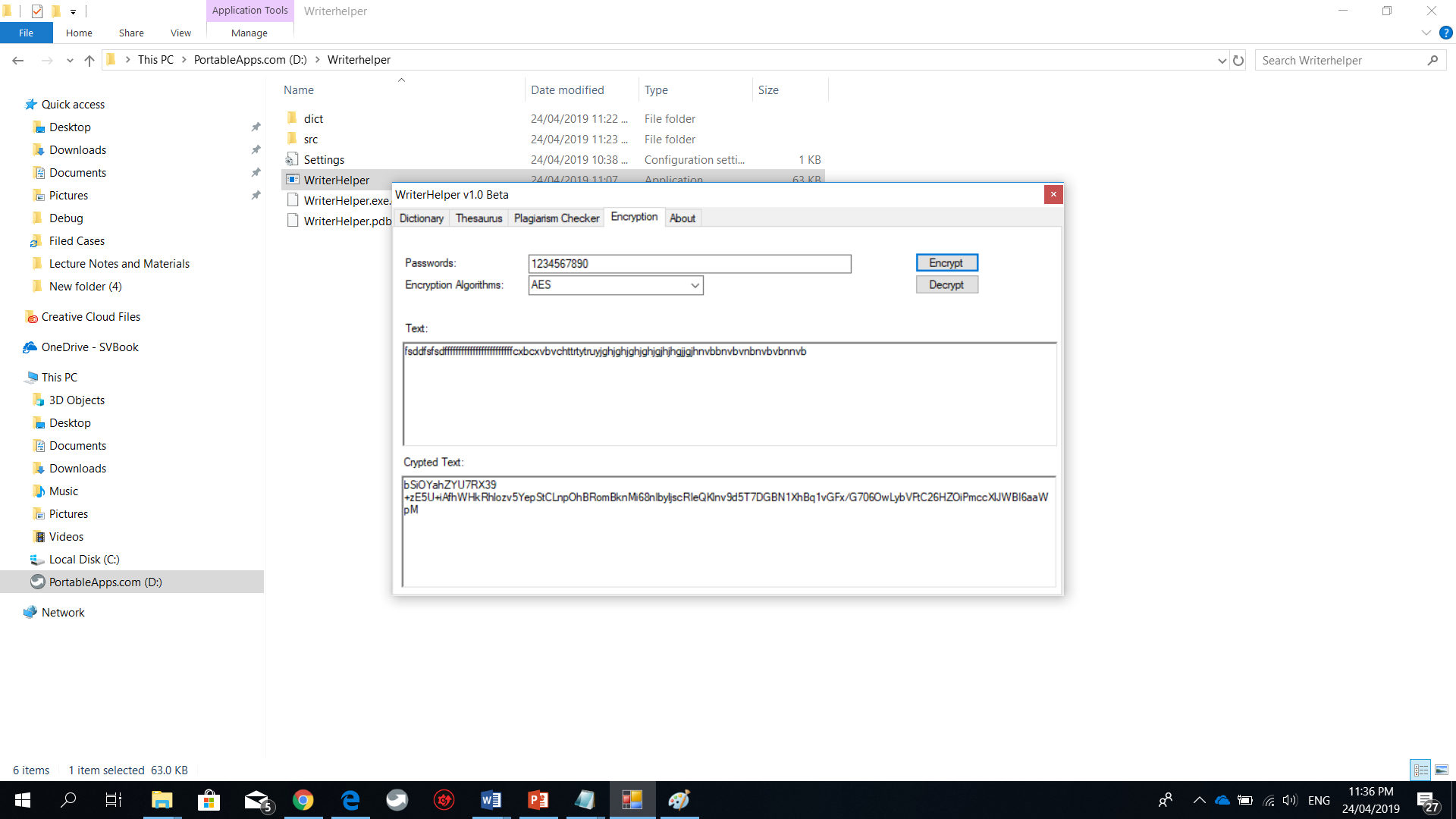 WriterHelper helps you to search for dictionary, thesurus using WordNet Dictionary, Encrypt Text using AES, DES, TripleDES, and Plagiarism CHecking.