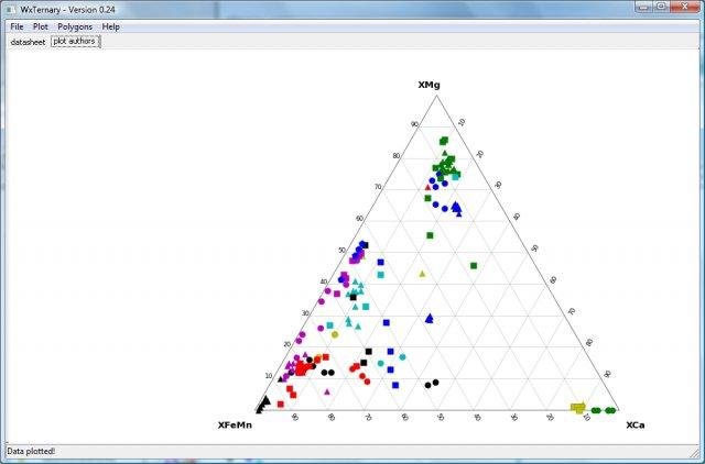 WxTernary is a set of Python scripts that can be used to plot data on a ternary diagram; it includes contouring, multiple plotting from csv data and retrieving pie plots from data points included in multiple polygons within the ternary diagram.