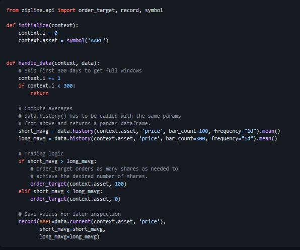 • Zipline tries to get out of your way so that you can focus on algorithm development