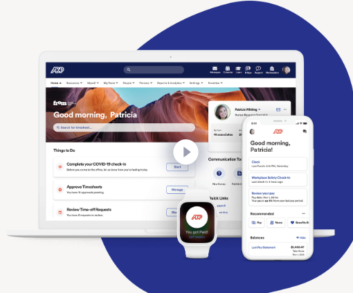 All in one, not one size fits all. Do you have too many systems and processes for managing employees? Manual data entry, piles of payroll paperwork and poor integration across systems result in lost productivity and compliance errors. ADP Workforce Now is a cloud-based platform for HR management software, where you can easily manage all of your HR functions — payroll, HR management, workforce management, talent, and benefits — and gain insights across them all. Quickly and accurately process payroll and equip your employees with anytime, anywhere self-service access to their information. ADP Workforce Now® Payroll is the best-in-class, affordable solution that makes payroll and tax filing easy. It’s engineered to help support compliance obligations and is ready to scale as your business grows. See how ADP Workforce Now provides everything you need to get payroll right.