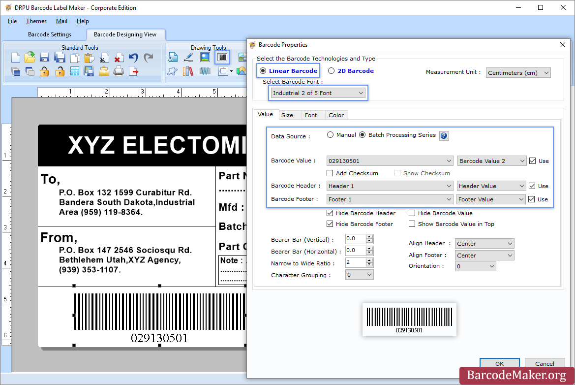(c): Now choose Linear or 2D Barcode and also select the barcode font.