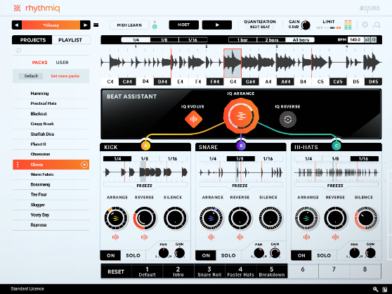 Rhythmiq allows you to instantly jam with your beats. Get unlimited beat variations with the turn of a single knob. Generate and save new Rhythmiq patterns and instantly create fills and build-ups. Enable your A.I. Beat Assistant and let Rhythmiq perform your beats in real-time like when you are jamming with a human band-mate. Jam with your beats like never before. Get unlimited beat variations with the turn of a single knob. Generate and save new Rhythmiq patterns and create breaks and build-ups. Enable your A.I. Beat Assistant and let Rhythmiq perform your beats in real-time, like you were jamming with a human band-mate. Your new "virtual electronic drummer" analyzes your beats and introduces nuanced micro-variations or musical, evolving changes. This will allow to focus on other parts of your music while your beat is organically evolving.