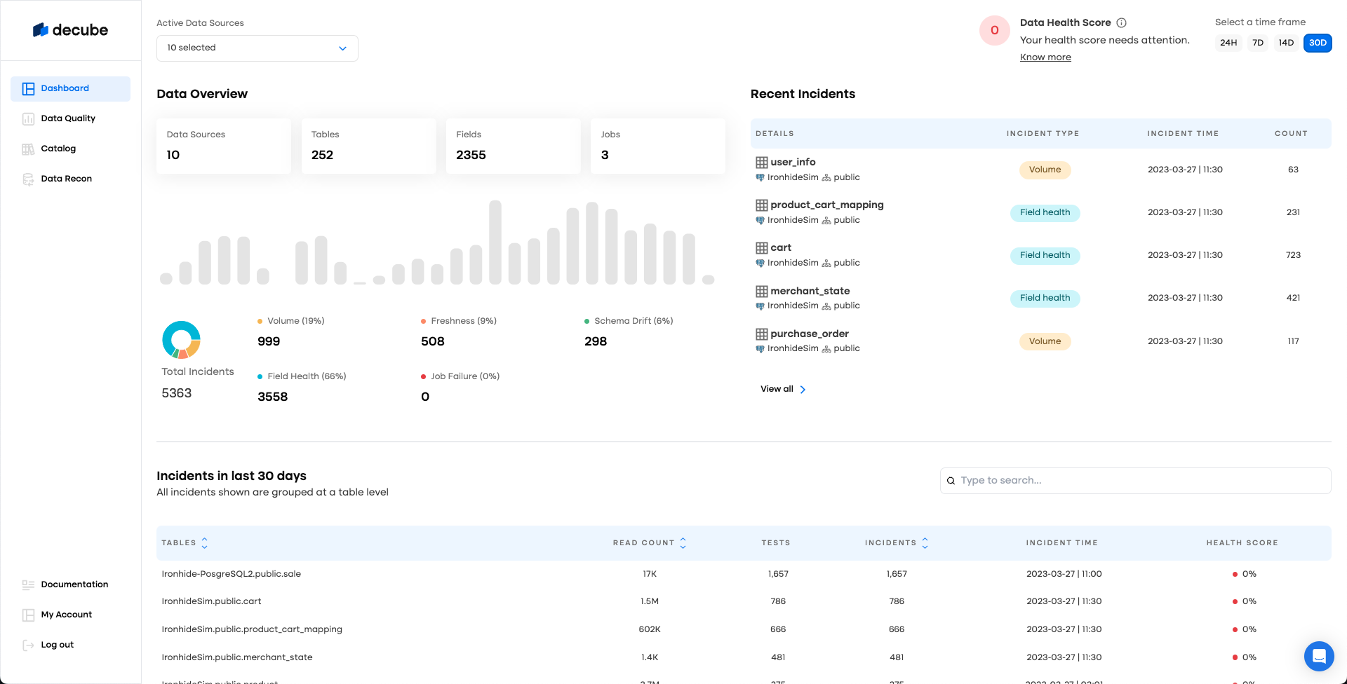 Decube's platform is customizable and scalable, making it easy for organizations to tailor it to meet their specific data management needs and manage data across different systems, data sources, and departments.