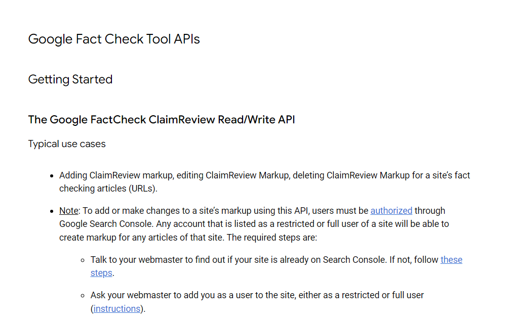 The Fact Check Tools consist of two tools: Fact Check Explorer and Fact Check Markup Tool. Both tools aim to facilitate the work of fact-checkers, journalists, and researchers. Google does not endorse or create any of these fact-checks. If you disagree with one, please contact the website owner that published it.