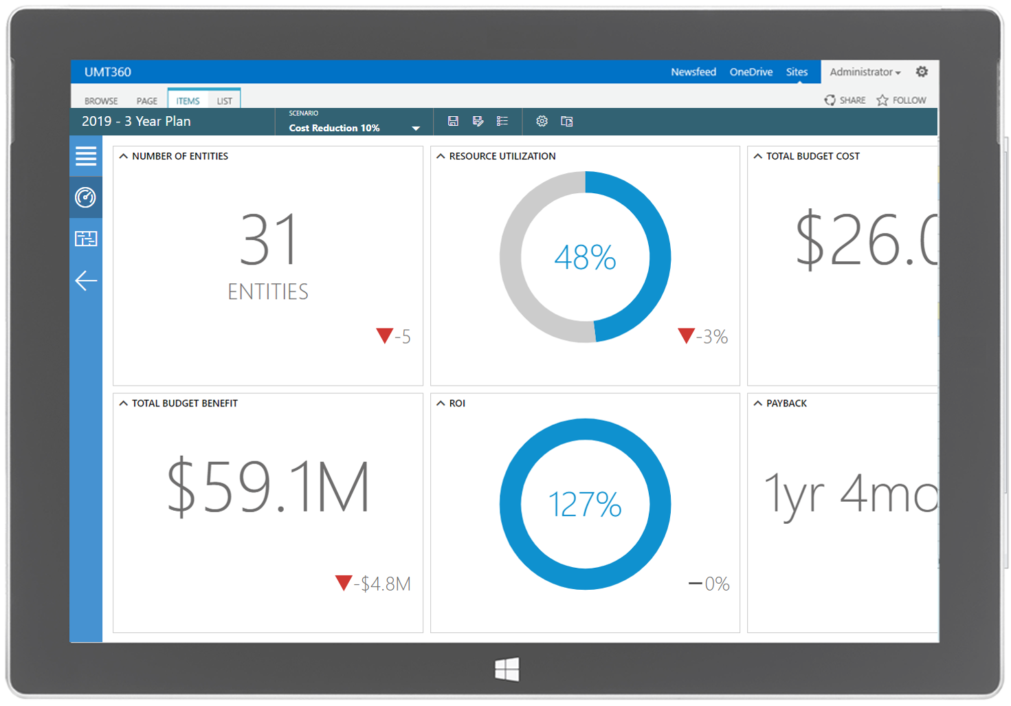 UMT360’s Strategic Portfolio Management solution provides the critical portfolio management capabilities that most organizations are currently missing. UMT360 ensures that the right top-down business planning and controls are in place to help you model and analyze all aspects of your portfolios, align all investments with strategy and accelerate business transformation.