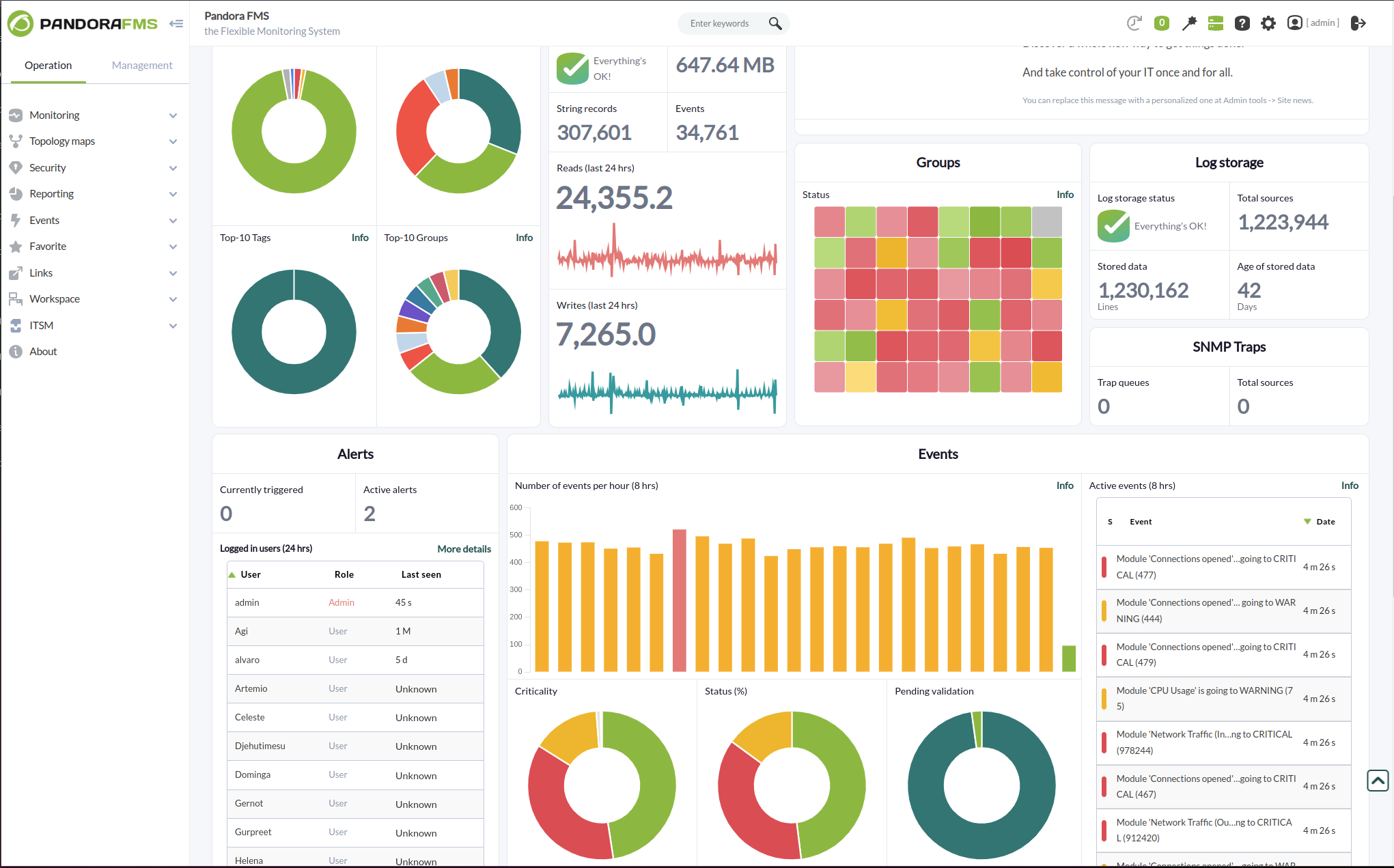 With more than 50,000 customer installations across the five continents, Pandora FMS is a truly all-in-one monitoring solution, covering all traditional silos for specific monitoring: servers, networks, applications, logs, synthetic/transactional, remote control, inventory, etc.