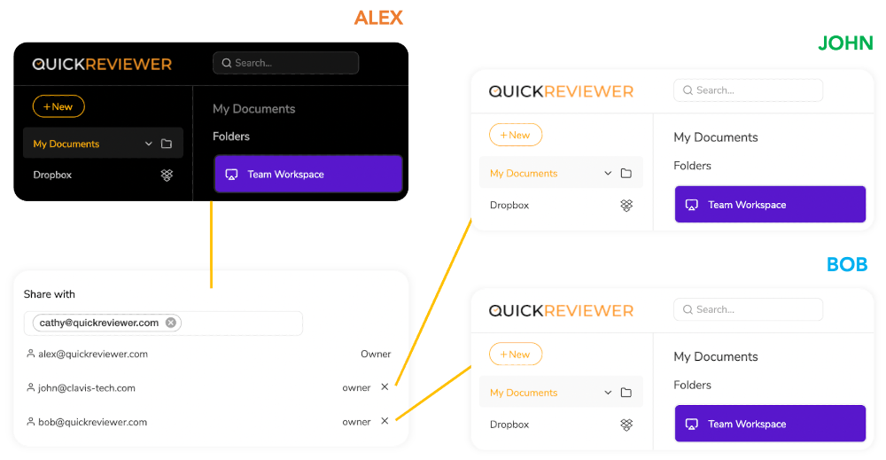 Organize feedback on creative projects without having to exchange multiple emails or files. Drag and drop to upload files and share them with any number of reviewers. Highlight text, pinpoint or add comments. Each reviewer is colour-coded for easy distinction, and they can reply or upvote on each other’s comments.