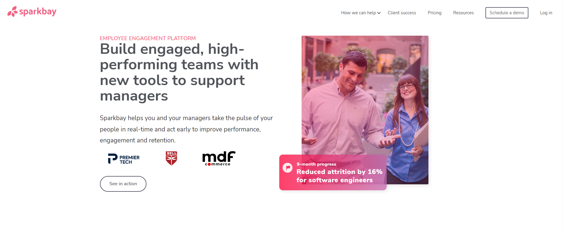 Sparkbay helps you and your managers take the pulse of your people in real-time and act early to improve performance, engagement and retention. Short and science-backed questions that monitor your workforce engagement throughout the year. Real-time reports that highlight improvement opportunities for each employee segment. Early alerts for employee segments that are at increased risk of unwanted turnover. Sparkbay continuous employee feedback monitoring uncovers disengagement patterns as soon as they arise. This way you empower your managers to act rapidly before this leads to increased turnover and lowered performance. Sparkbay analyzes your recent departures to understand the issues causing people to leave, and predicts employees at risk of leaving. That way you and your managers can address issues early and prevent talent from leaving.