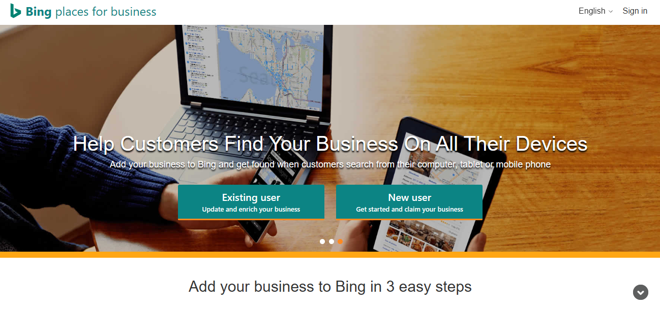Bing Places for Business is a free online platform that enables local business owners to create and manage their business listings on Bing. By adding your business to Bing, you ensure that customers can find accurate information about your business across all their devices, including computers, tablets, and mobile phones. The process involves three easy steps: claiming your listing (or adding a new one), completing your listing profile with details such as photos, hours of operation, and services offered, and verifying your listing to protect it from unauthorized changes. Verification can be done via PIN sent to your business address, phone, or email. Bing Places also offers features to help businesses respond to events like the COVID-19 pandemic, including special announcements, temporary hours, and a "temporarily closed" status.