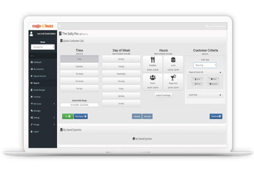CogoBuzz is a Customer Engagement & Marketing Automation Platform that integrates Digital Signage, SMS, Email and Social Media Marketing. Developed for dining, entertainment and service venues, we enable businesses to search, monitor & analyze customer data via our unique mobile-friendly, a cloud-based dashboard for extremely targeted customer messaging that generates immediate revenue. Capture real-time data and engage customers in real-time. Send targeted messages based on customer profiles and visit-based data. Generate graphs, alerts and reports based on data patterns. And improve digital interaction with digital signage campaign integration! Get customers in the door on a slow day with a Flash deal, a limited-time special offer that customers can’t refuse. At CogoBuzz we understand that building a lucrative hospitality business with high-value customers is the difference between success and failure. Competition is tough and you only have so many hours in a day.