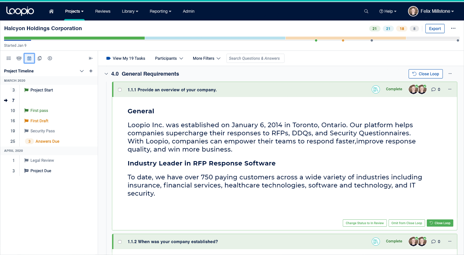Loopio is a technology company that helps enterprises supercharge their responses to RFPs, DDQs, and Security Questionnaires. It’s been adopted by more than 800+ world-leading organizations, including DocuSign, FedEx, IBM, Sprinklr, and Thomson Reuters, since 2014.