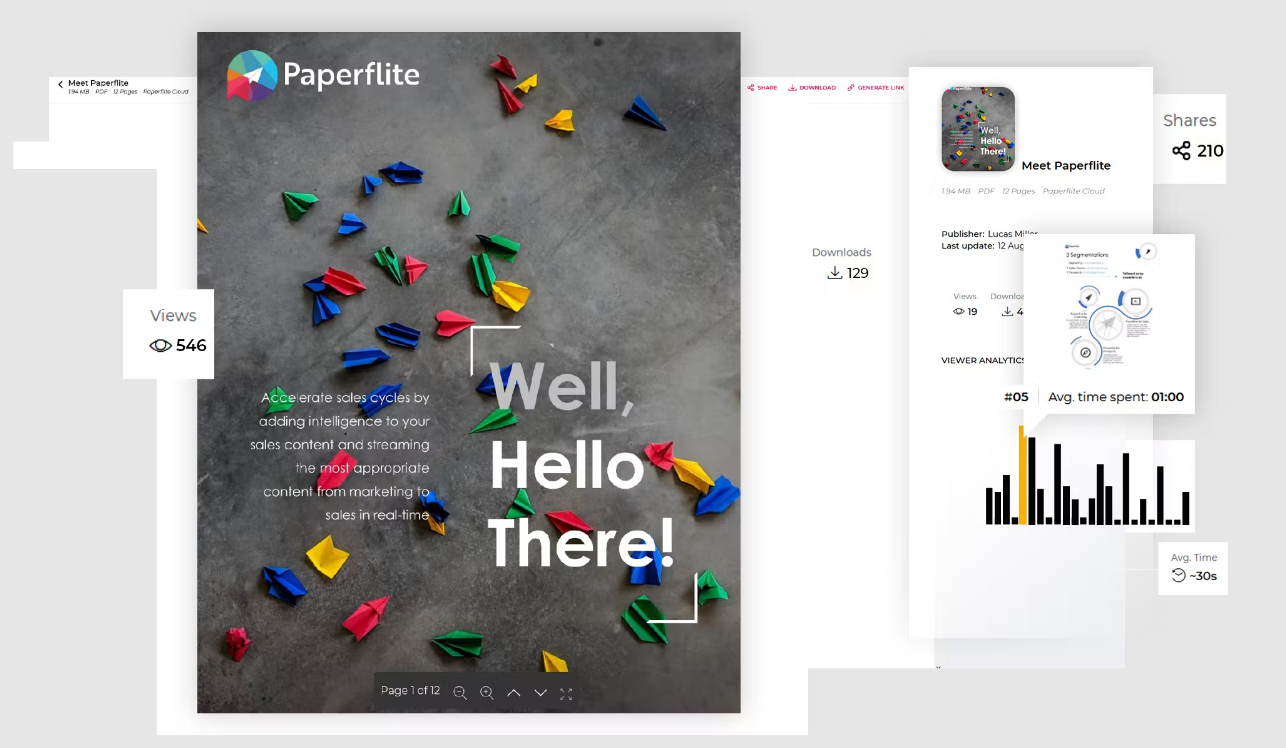 Paperflite is a marketing collateral and sales content management platform. With Paperflite marketing teams can curate, organize and distribute their content to sales teams, customer success teams and channel partners. Paperflite provides real-time engagement analytics on internal and external user interaction with your content so sales reps can prioritize leads and know when to follow up. Paperflite integrates with industry-leading CRMs and Marketing tools and available across devices.