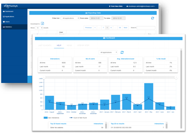 Available immediately and at any time as soon as the user logs on to their profile, our digital assistant offers multiple contextualised help according to the user's screen, profile or language. Our Shortways Designer allows you to save time when creating, modifying and publishing your user documentation!