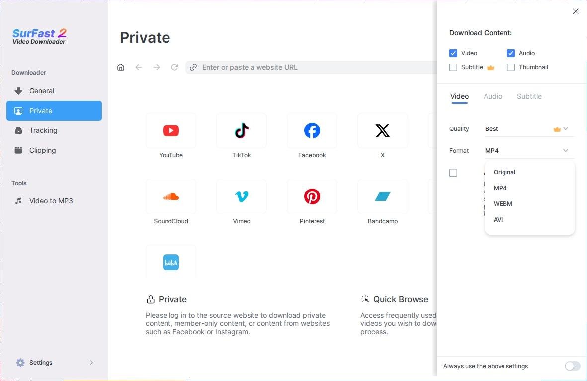 PcGoGo Video Downloader is a powerful HD video downloader for YouTube, Facebook, Instagram, Twitter, TikTok, and other streaming sites. Supporting over 10,000 platforms, it enables batch downloading of high-quality videos and audio at 10x speed.