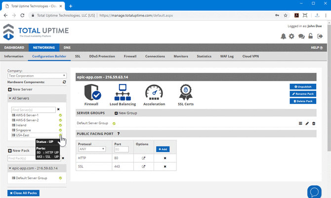 Pros: Really impressive platform, solid load balancer and crazy good support. I first used Total Uptime a couple years ago for my first project which was an ADFS cluster deployed on three continents. This was exactly what we needed to distribute traffic to the closest server and automatically reroute traffic if a server went offline or was taken down for updates. This service is 100% perfect for this application.