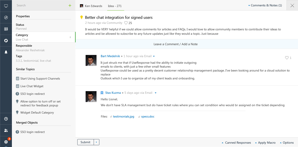 Pros: Fully customizable flexible platform for customer support and idea management.
