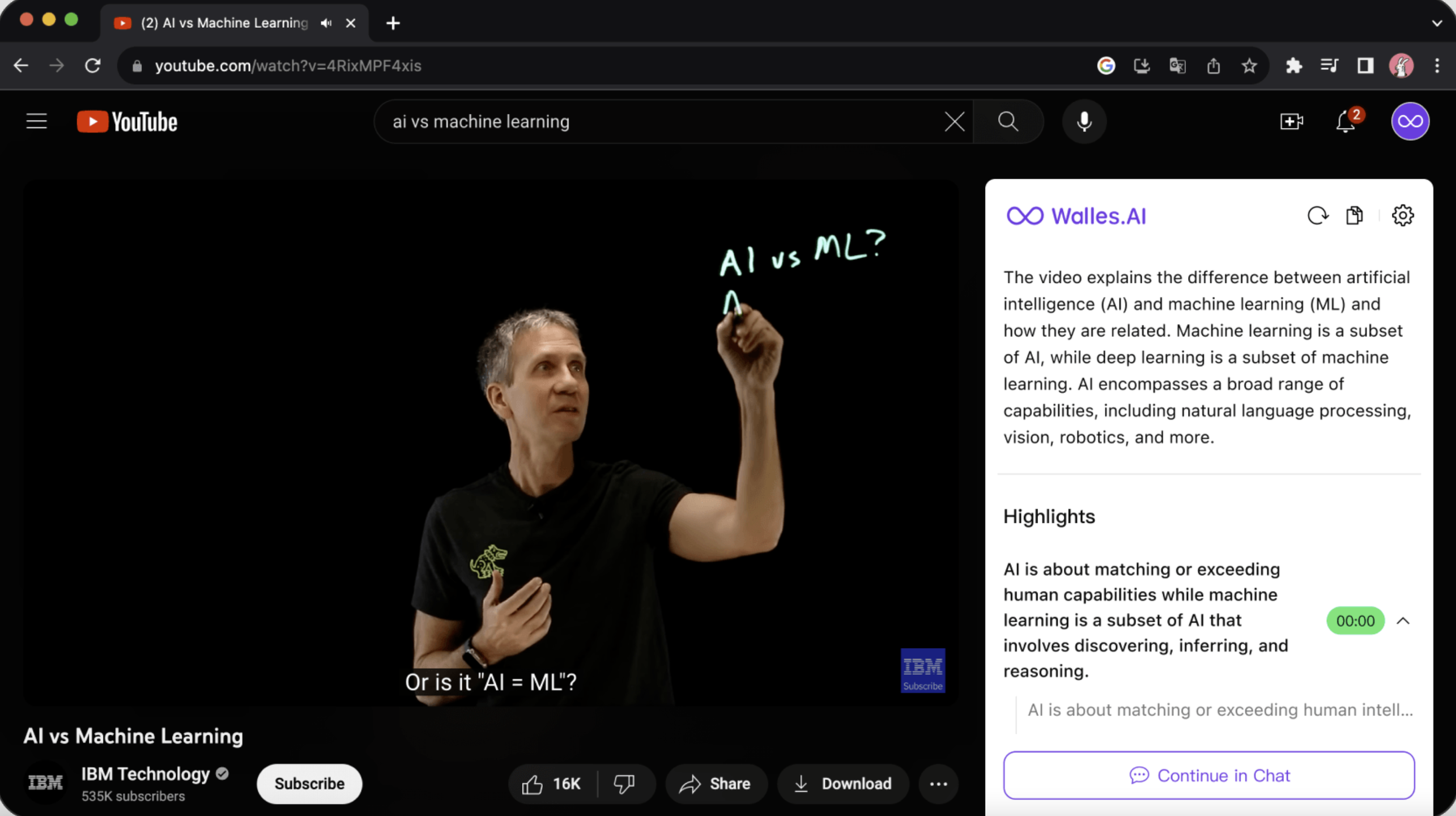 Walles.AI allows you to have a ChatGPT-like chat experience with any web page, PDF document, or YouTube video. Select any text on the webpage and let Walles.AI explain, translate, or paraphrase it based on GPT-3.5. Open the Sidebar to chat with Walles.AI easily about anything, all powered by GPT-4 and GPT-3.5, just as intelligent as ChatGPT. Open YouTube to get a video summary and quickly generate a summary outline without wasting a lot of time watching the full video. Don't ask questions and then forget about them. All your chats and memos on Walles.AI can be exported to Notion.